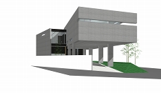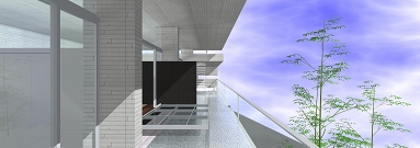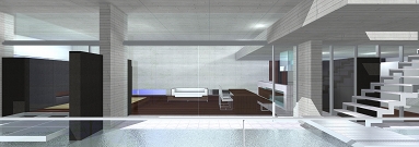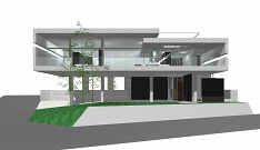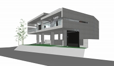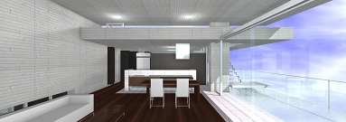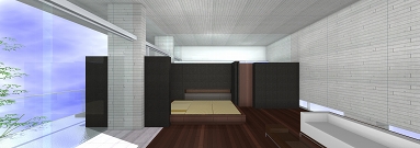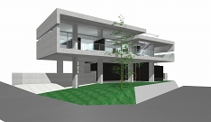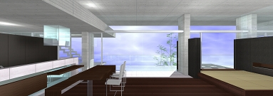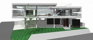 この敷地の最大の魅力、桜島への眺望を最大限生かす為、1階をピロティーとして主室を2階に設け、さらに桜島へ正面を向くように敷地に対して軸線をずらしています。
